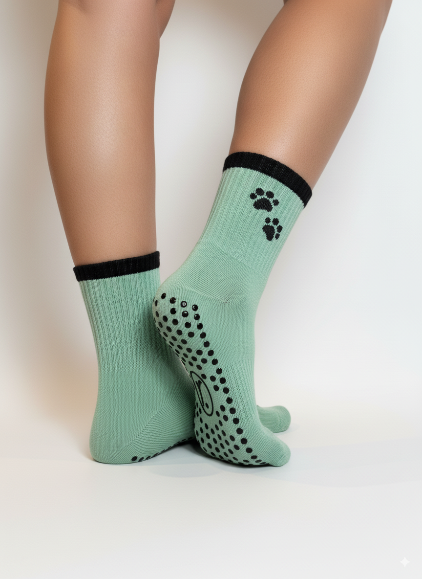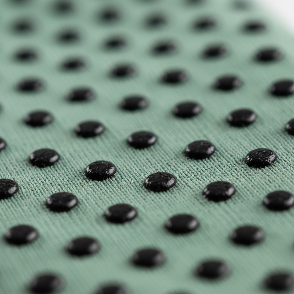 Nuestros calcetines de pilates están diseñados específicamente para mejorar tu práctica. Cuentan con puntos antideslizantes en la suela que proporcionan un agarre superior en la esterilla, lo que permite mantener posturas con mayor estabilidad y seguridad.